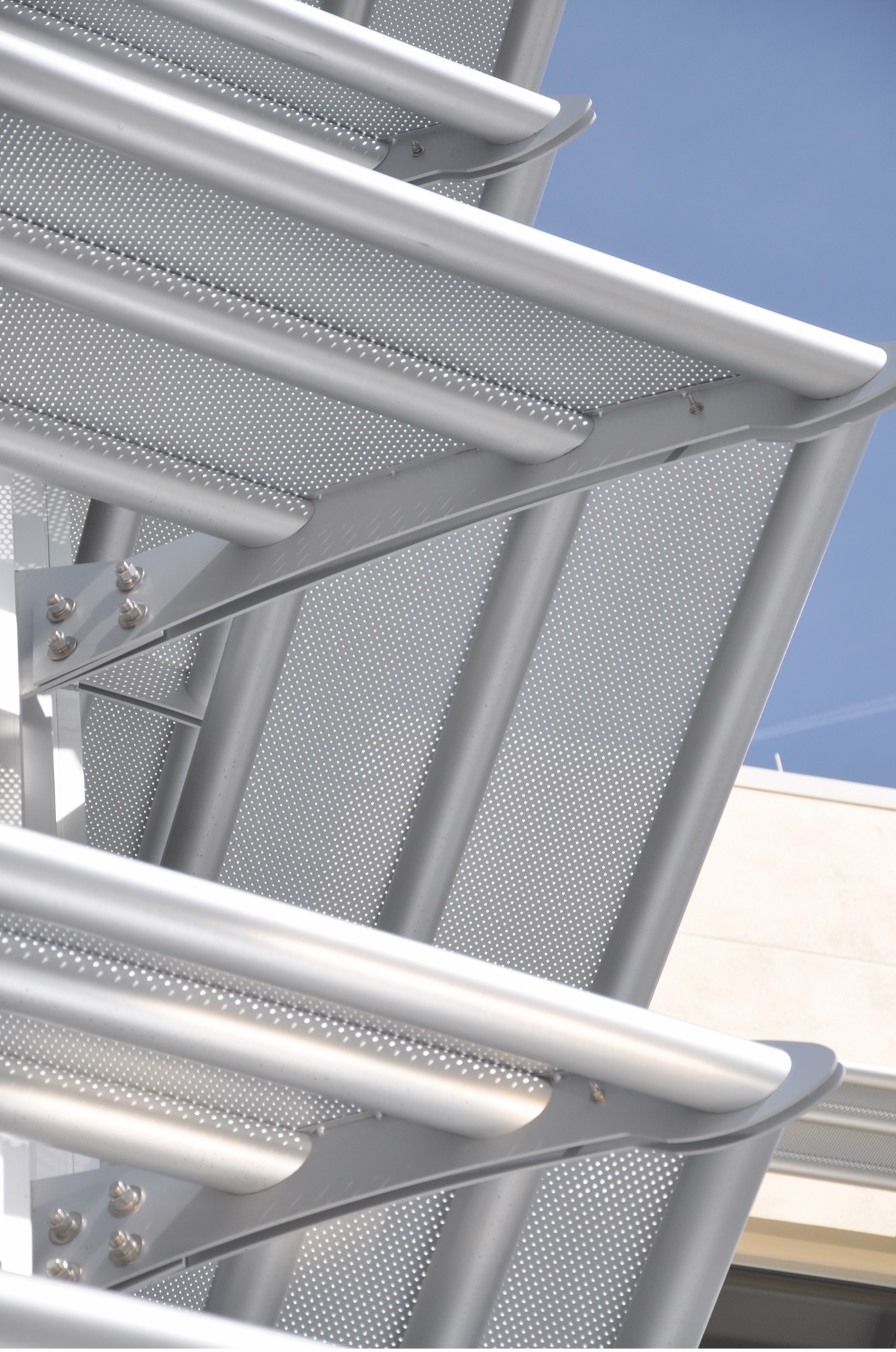 Perforated metal sun screens, like the below, can help add aesthetic appeal to your building while providing functionality.