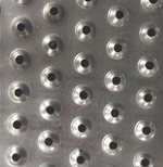 Direct Metals® supplies Traction Tread™ steel safety flooring that features perforated buttons that provide slip-resistance for industrial applications. Our Traction Tread™ flooring is ideal for commercial applications where pedestrian traffic is a constant and requires ADA compliance. The standard sheet size for this stainless steel flooring is 36" x 120". Sheet sizes can also be cut to order to your specifications. Variations to the surface design of the metal floor grating can also be produced.