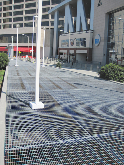 Another architectural metal bar grating application includes steel grates, which are an integral part of the interior of industrial plants, and the exterior landscape all around us. Also known as metal grates, steel grates permit the passage of light, heat, and liquid, and therefore are useful in screening out unwanted elements and debris in various settings. These applications are typically fit with steel grates: